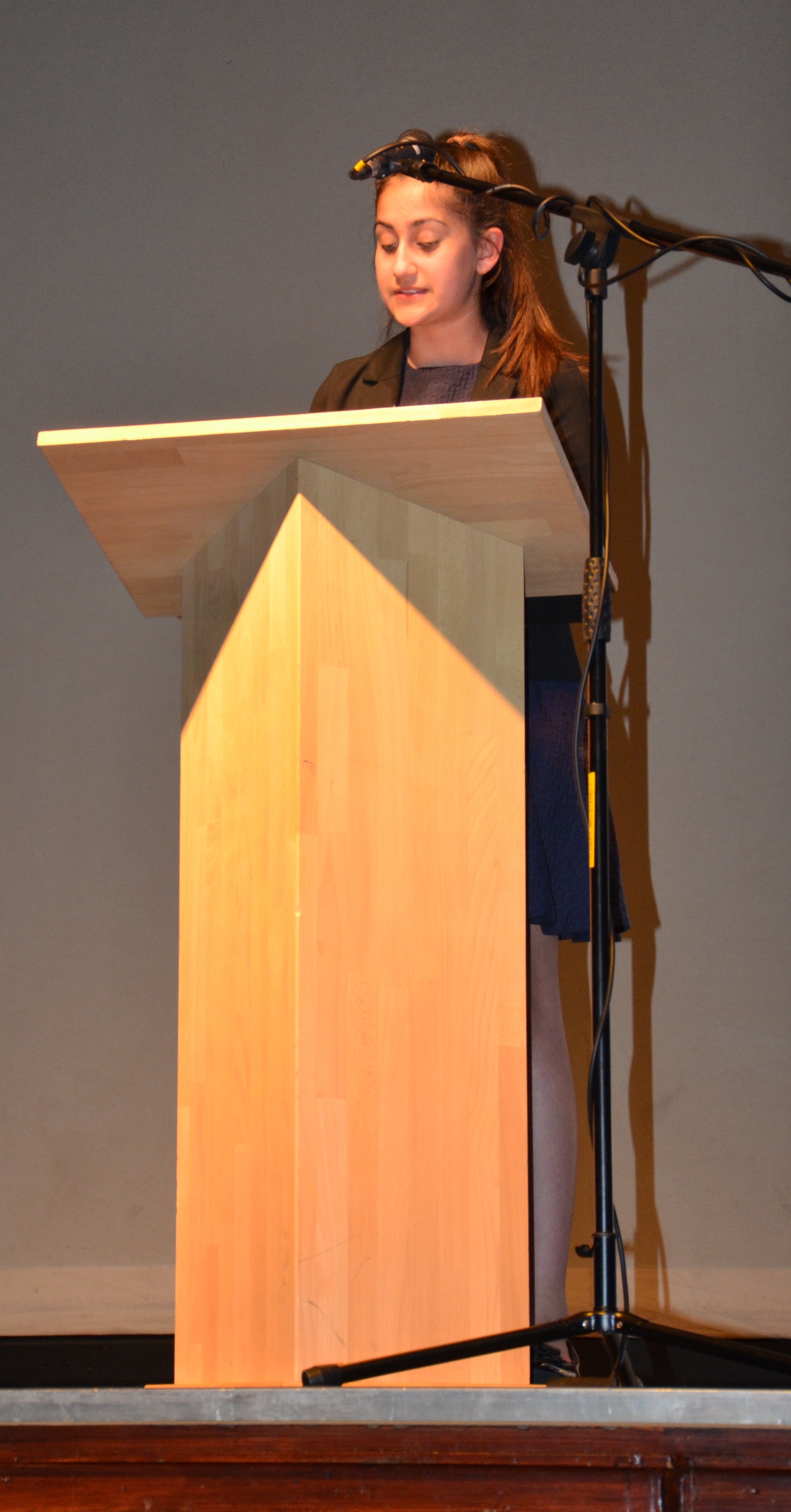 Liv Sample giving vote of thanks at Natalie Haynes lecture