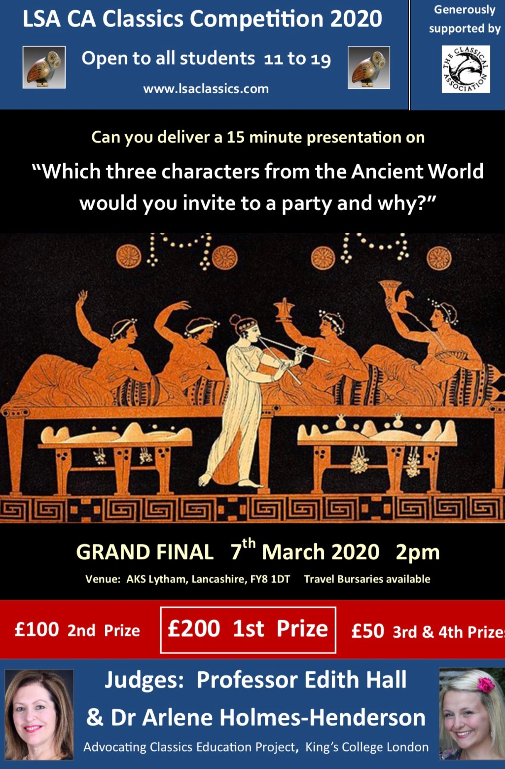 This Competition is free to enter and open to any young person aged 11-19, regardless of classics or educational background. Travel bursaries may be available if the cost of travel would prevent you from attending. We look forward to watching your entries and hearing all about your chosen characters – share your thoughts, images and get others engaged on social media via @lsaclassics and the hashtag #ClassicsCompetition2020