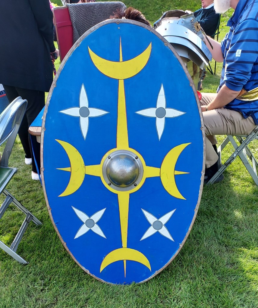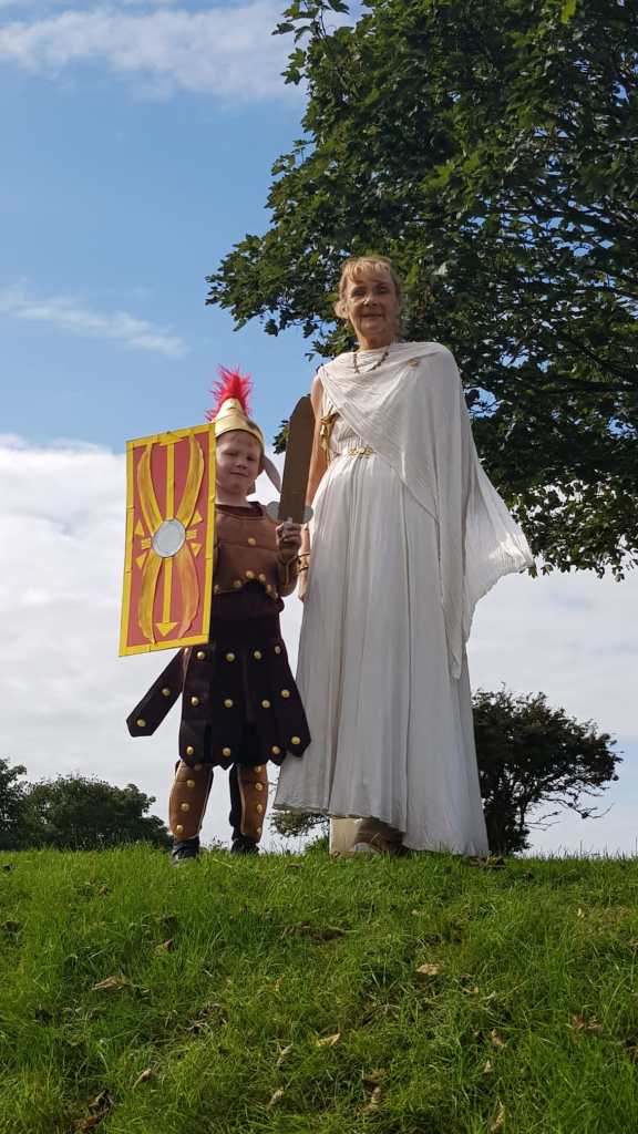 The hundreds of visitors who came along were greeted by Stephanus the Soldier, Jilliana the Matrona and Emperor Nigellus and our budding young detectives set out on a quest to crack the treasure hunt and find Decianus the Detector, complete with golden Mercury wings. On their way, they stopped off at Chris’ brooches, Greg’s garden, Tony’s team of booksellers and the super shield stall where swords could also be made and decorated. That’s if they weren’t too distracted by the stacks of home made cakes on the refreshments stands, the many prizes ready to be won on the tombola or Betsy’s tasty Pompeian Pizza special!