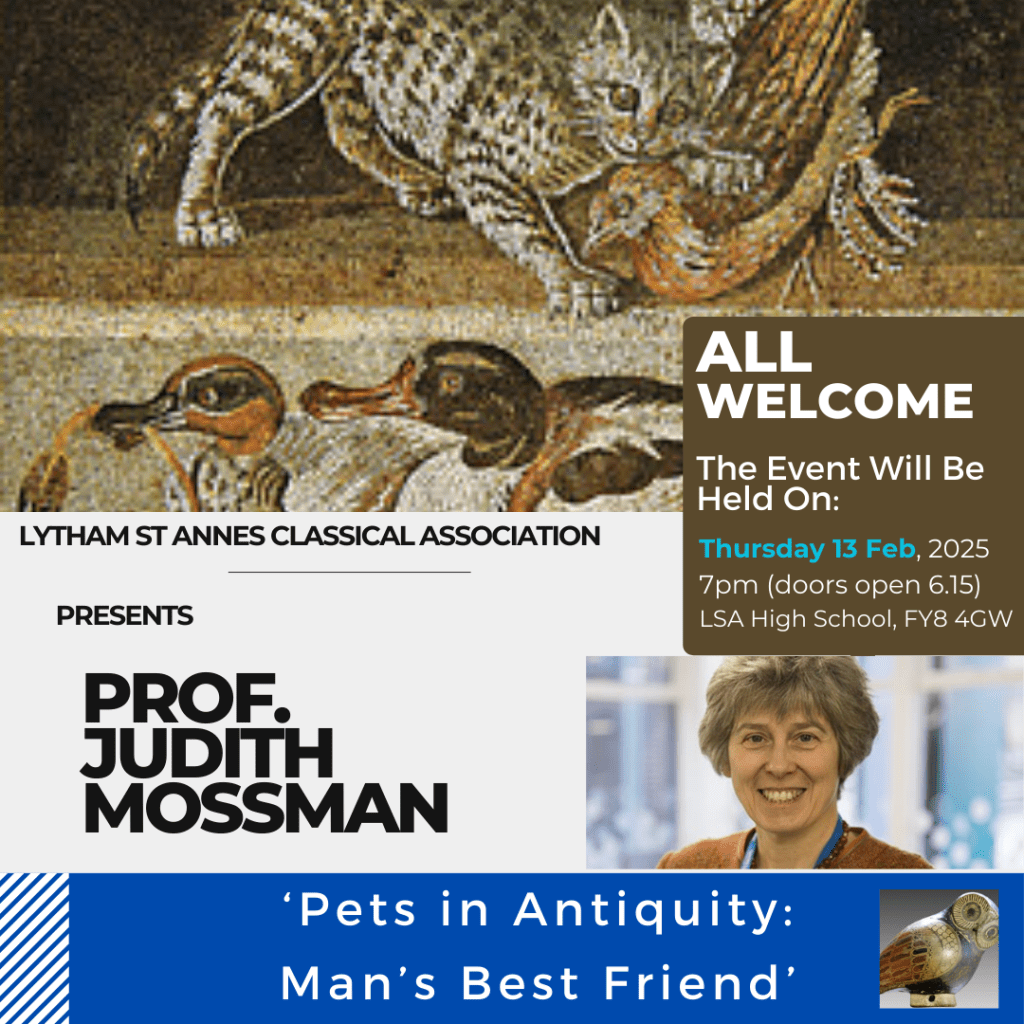 Chair of the Council of the national Classical Association, Judith is also President of the Hellenic Society and a Professor Emerita at Coventry University. Judith specialises in Greek literature in the fifth century BC and the second/third century AD and is the author of two books and a number of edited volumes and articles on Euripides and Plutarch. In her talk for the Association, she’ll be exploring a topic close to many of our hearts – animals!