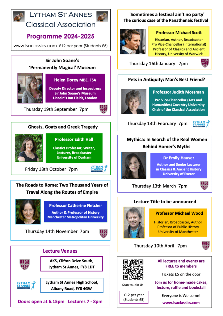 Our President returns, back in his January slot, to deliver his annual Address – in 2025, he will focus on the highlight of the ancient Athenian religious and cultural calendar, the Panathenaic Festival, and shed new light on its history. Michael combines his academic work with his position as Pro-Vice-Chancellor (International) at the University of Warwick and he is a prolific broadcaster, author and public engagement specialist who was the recipient of the Classical Association Prize in 2021. You can read about his latest book on archaeology, X Marks the Spot, here.