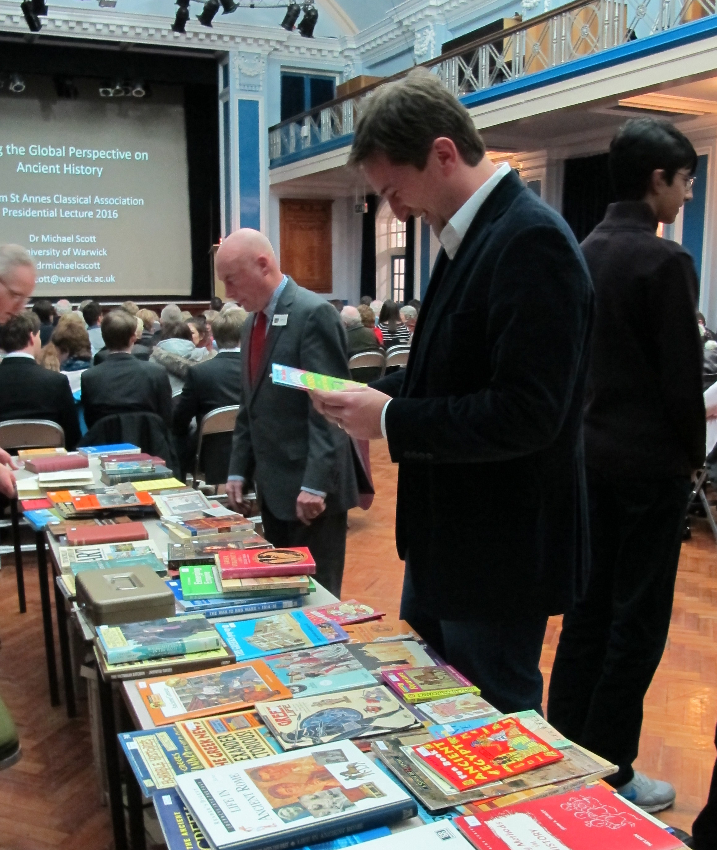 Dr Michael Scott perusing the books before his Presidential Lecture 2016